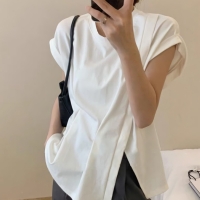 여성 봄 반팔 트임 핀턱 민소매 티셔츠
