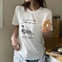 여성 레터링 프린팅 스판 반팔 티셔츠