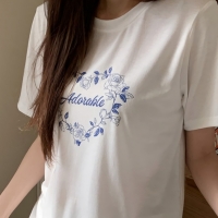 여성 데일리 플라워 레터링 반팔 티셔츠