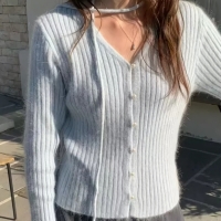 여성 리얼 밍크 앙고라 스트링 가디건