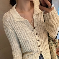 여성 봄 데일리 퍼프 소매 카라 니트 가디건