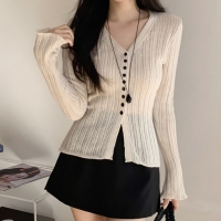 여성 봄 스카시 펀칭 반팔 니트 가디건