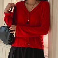 여성 봄 데일리 레드 스트링 크롭 가디건