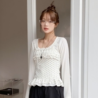 여성 봄 프릴 도트 끈나시 가디건 세트