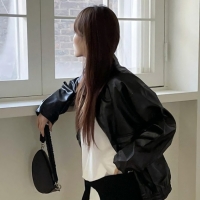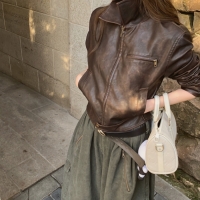 여성 겨울 바이트 레트로 레더 자켓
