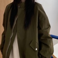 여성 배색 카라 오버핏 포켓 야상 워크 자켓