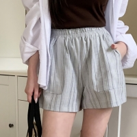 여성 세로 스트라이프 와이드 밴딩 숏 팬츠