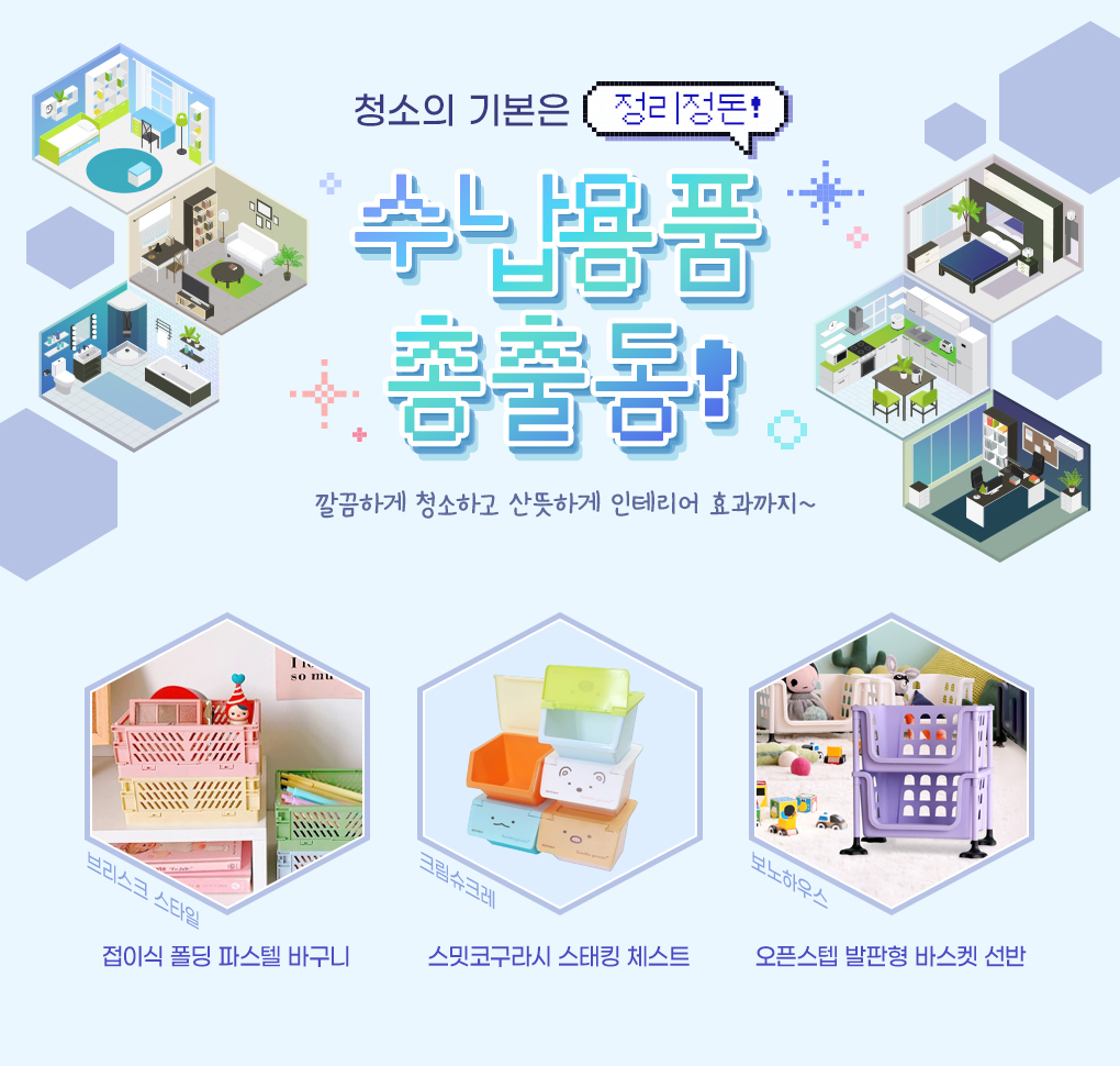 접이식 폴딩 파스텔 다용도 소품 바스켓 바구니 중형