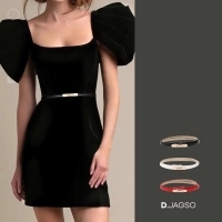 여성 유니크 원피스 포인트 패션 블랙 골드 벨트