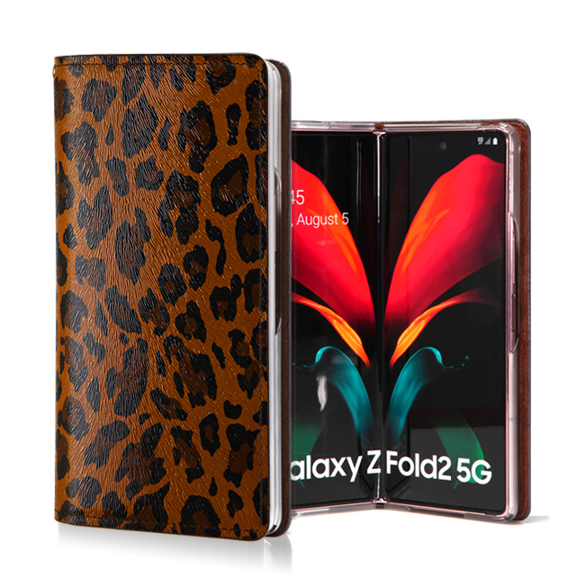 갤럭시 Z폴드2 레오파드 가죽 다이어리 지갑 케이스
