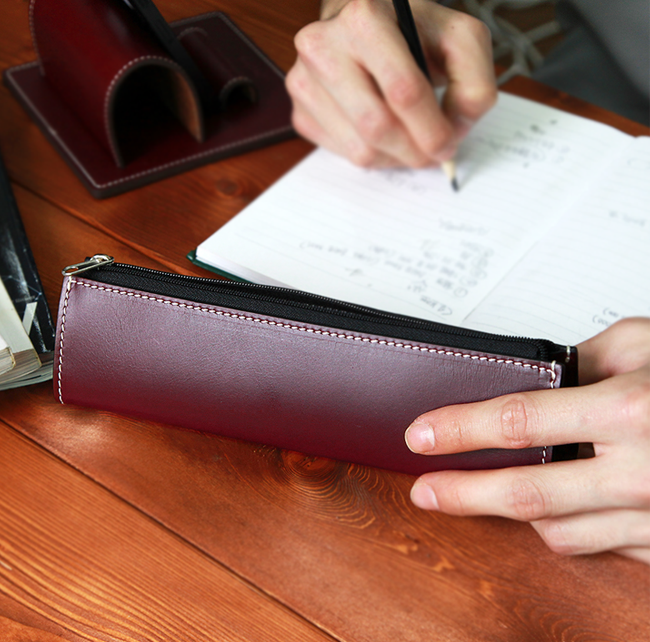고등학생 대학생 가죽 필통 지퍼 고급 펜 케이스