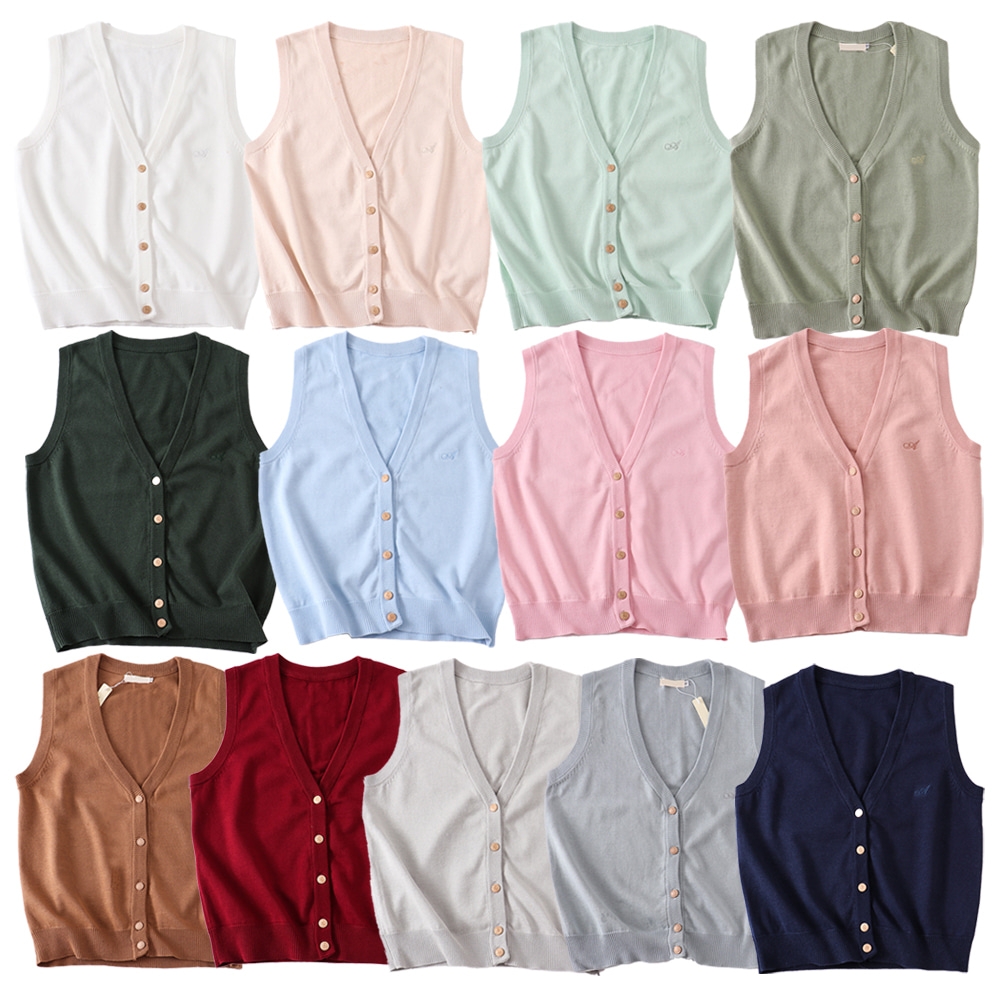 버튼 자수 포인트 단색 브이넥 가디건(13color) 교복