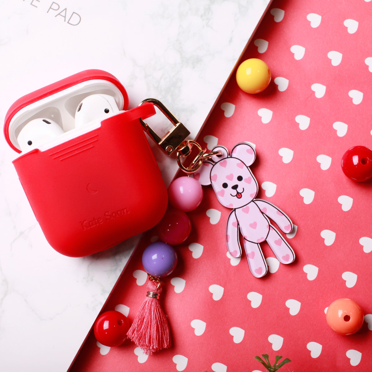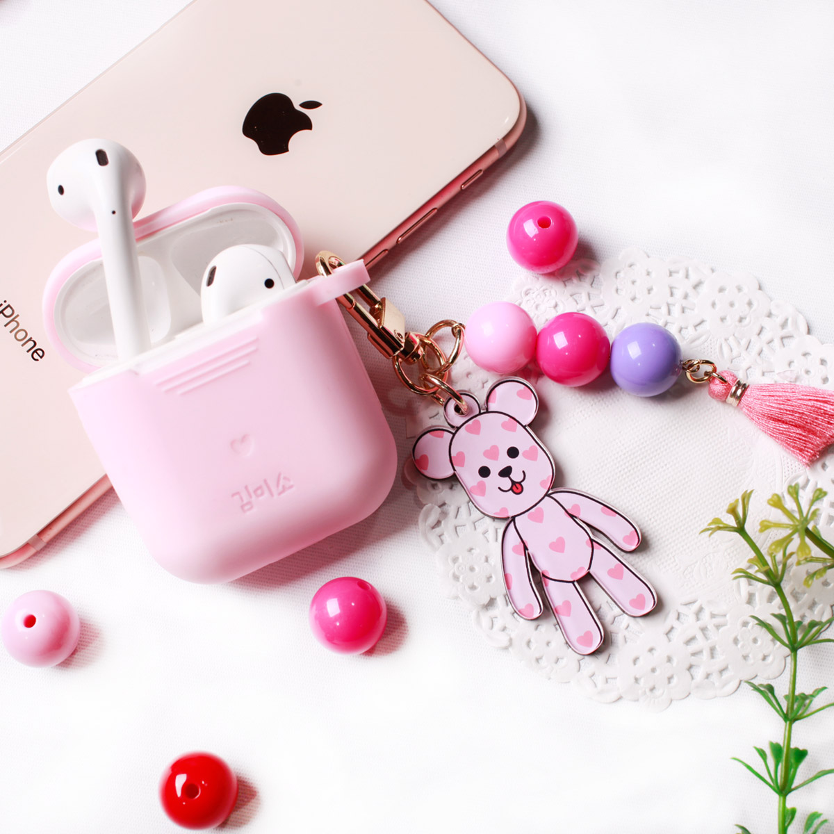 [주문제작] 실리콘 에어팟 각인 케이스+곰돌이키링