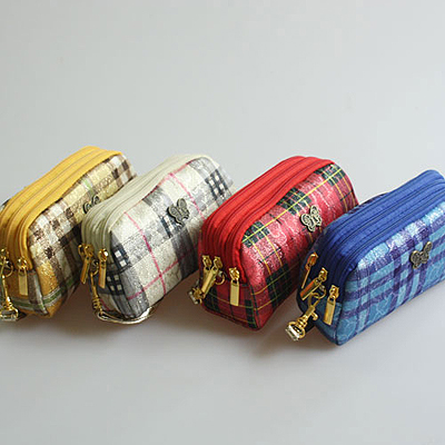체크 3단 파우치