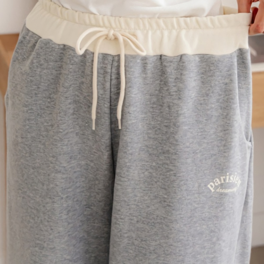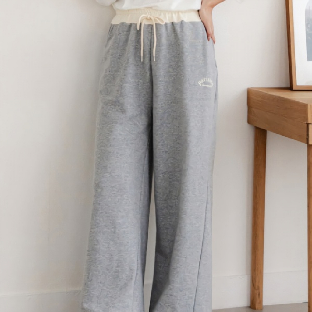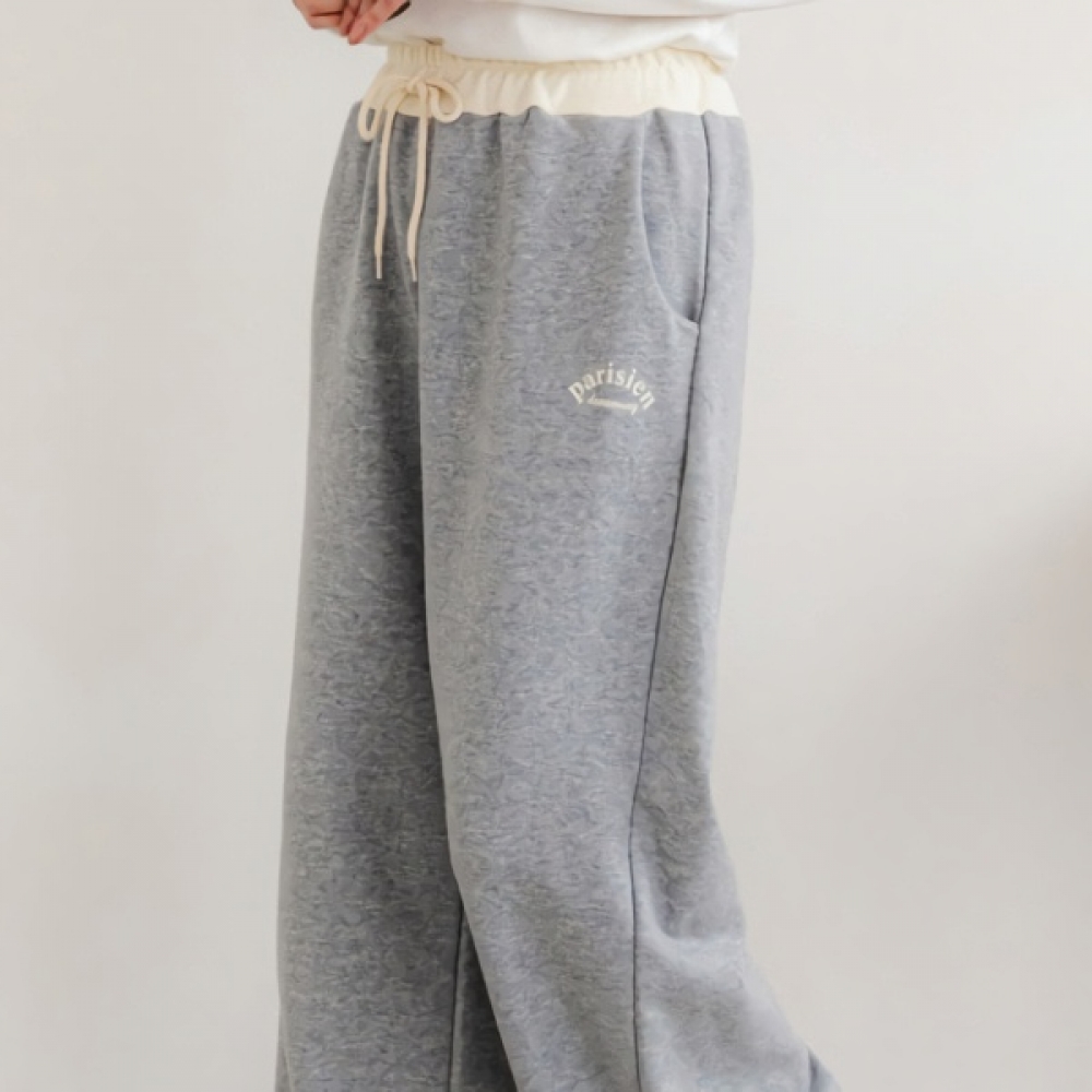 여성 밀크 쭈리 배색 레이어드 밴딩 팬츠