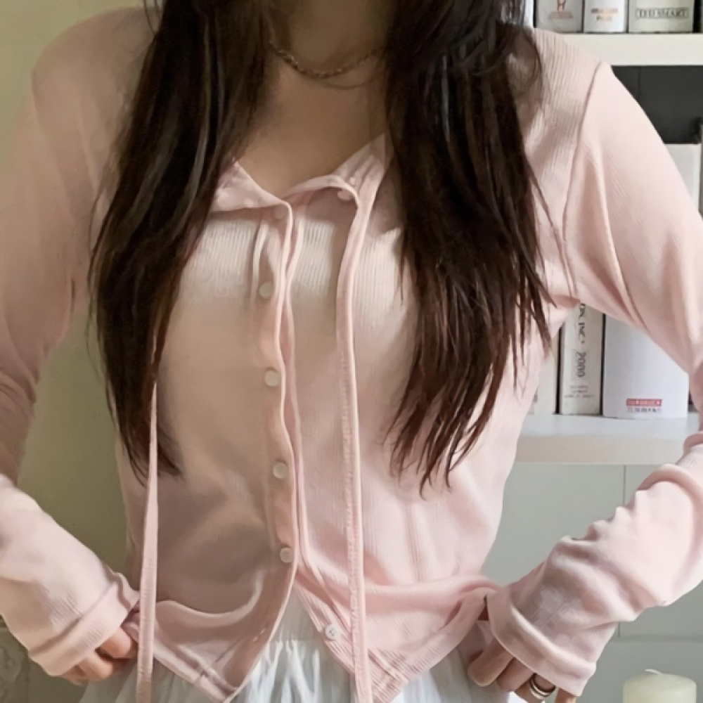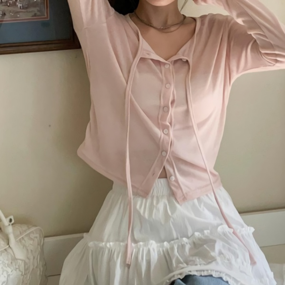 여성 봄 브이넥 슬림 나시 가디건 세트
