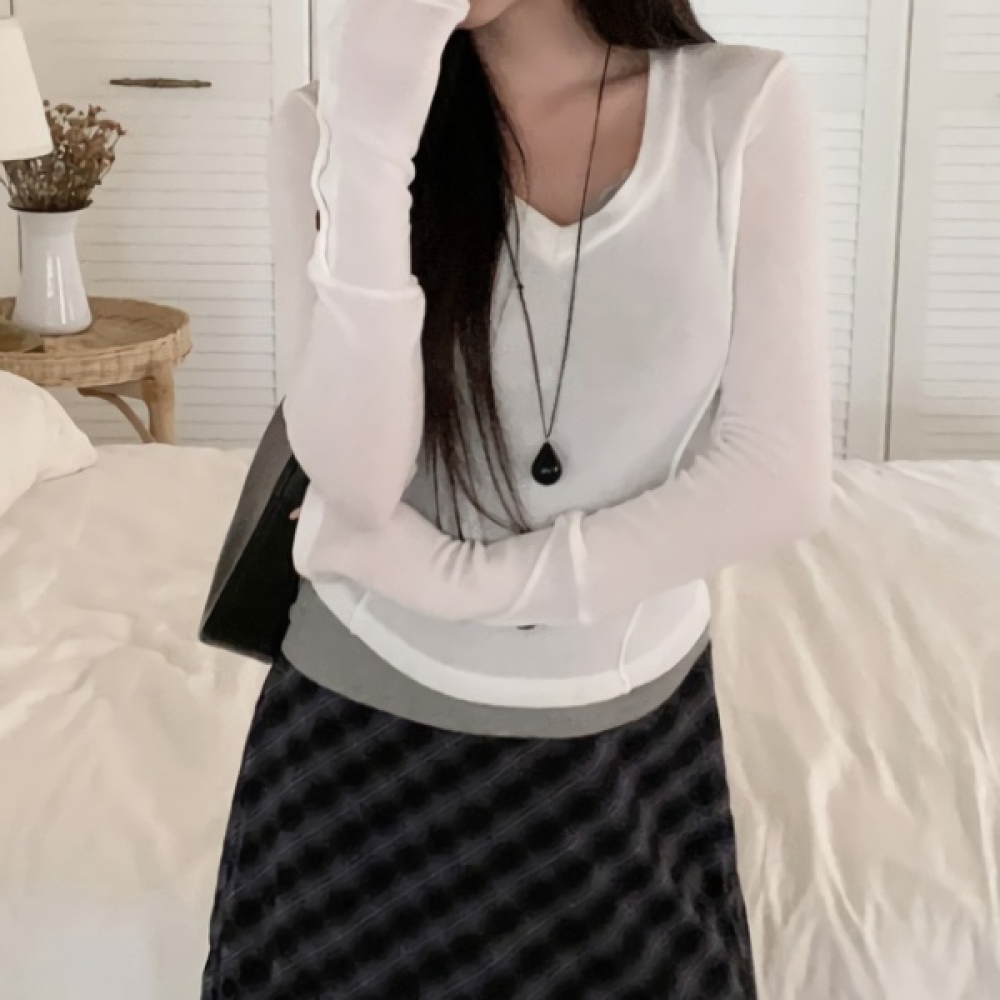 여성 봄 여름 배색 나시 레이어드 니트