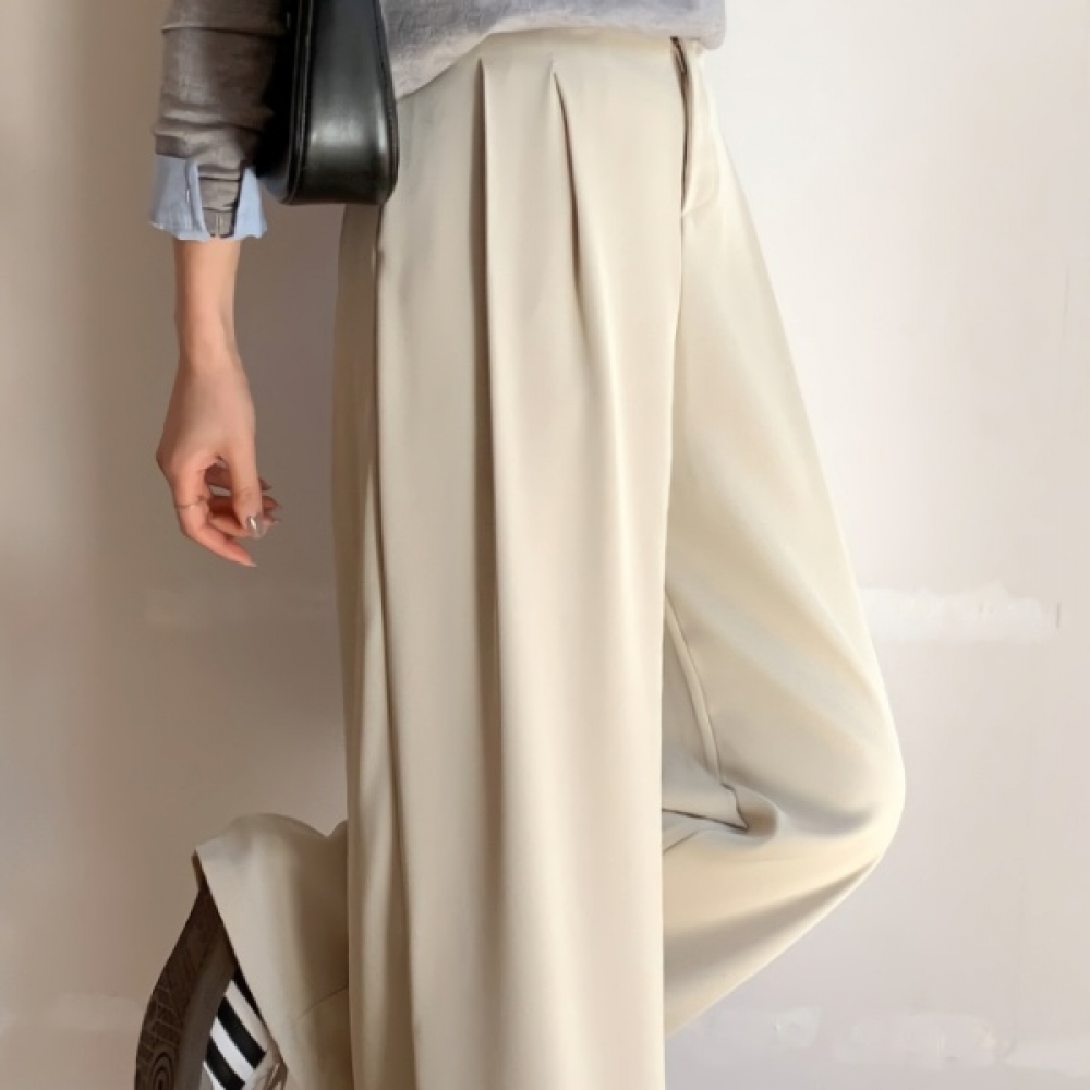 여성 봄 핀턱 세미 와이드 밴딩 슬랙스