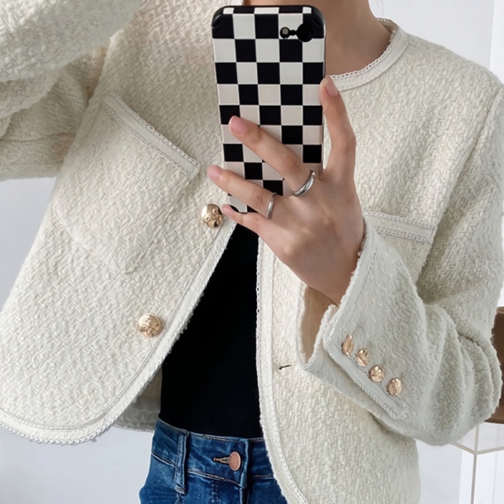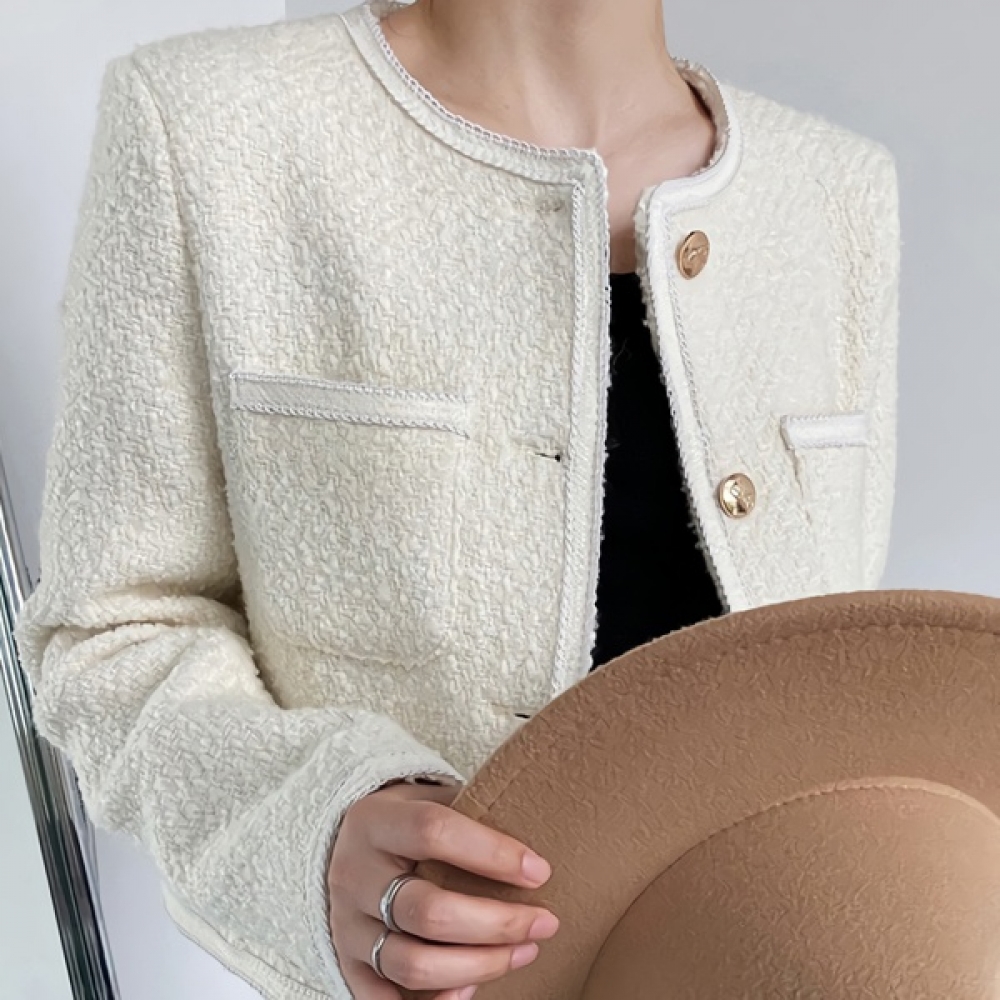 여성 봄 여름 데일리 울 트위드 크롭 자켓