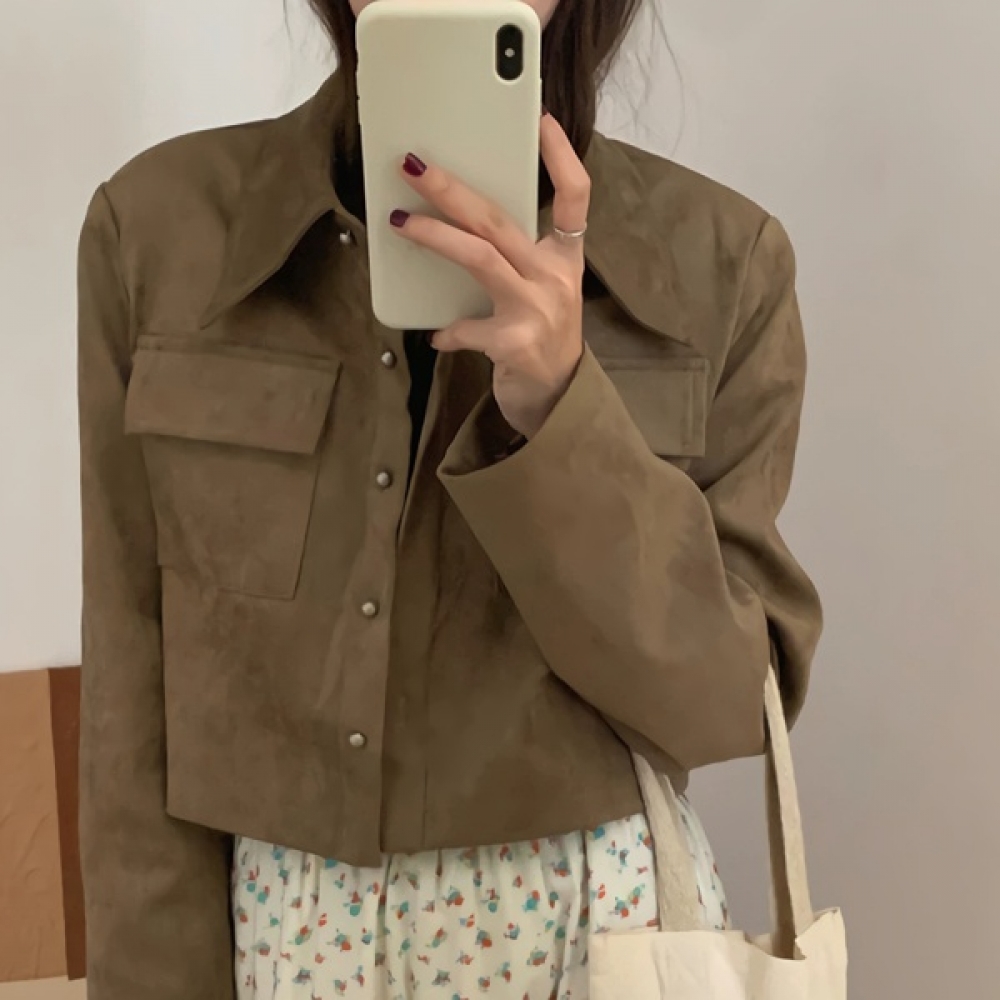 여성 봄 여름 데일리 스웨이드 크롭 자켓