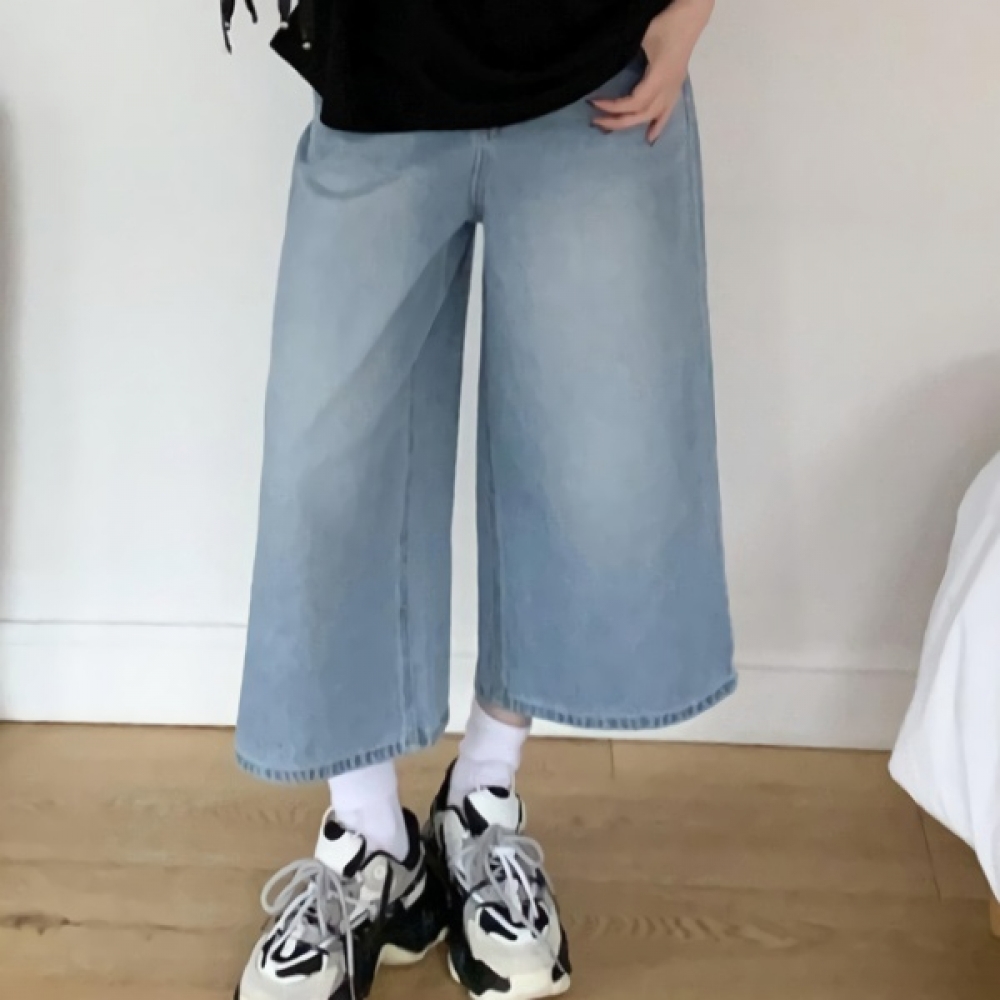 여성 워싱 스트레이트 와이드 데님 팬츠