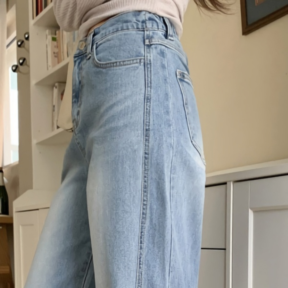 여성 워싱 스트레이트 와이드 데님 팬츠
