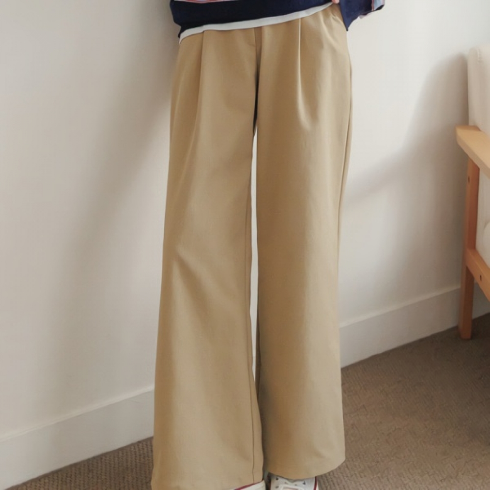 여성 봄 핀턱 세미 와이드 밴딩 슬랙스