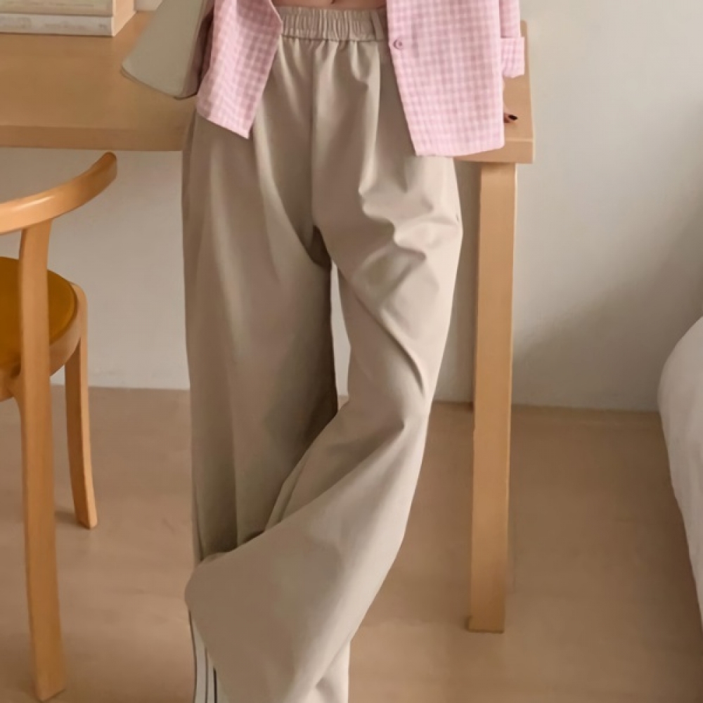 여성 봄 핀턱 세미 와이드 밴딩 슬랙스