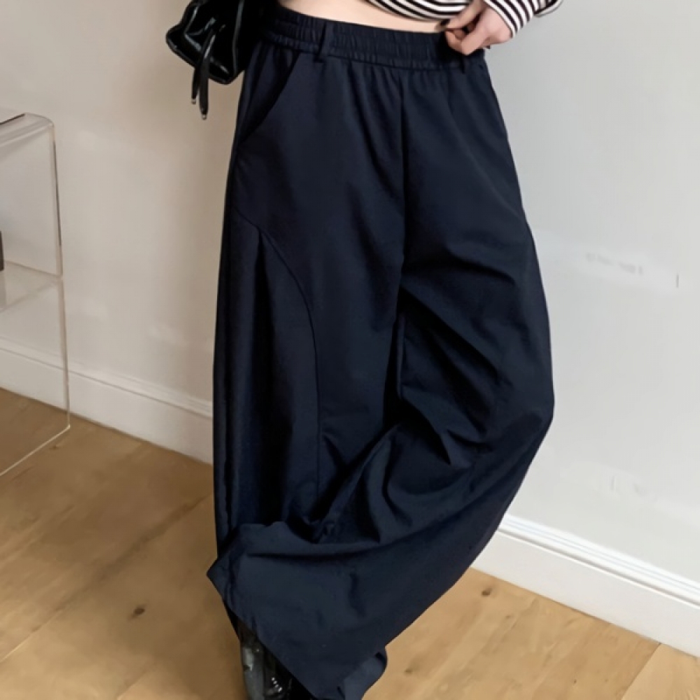 여성 봄 핀턱 세미 와이드 밴딩 슬랙스