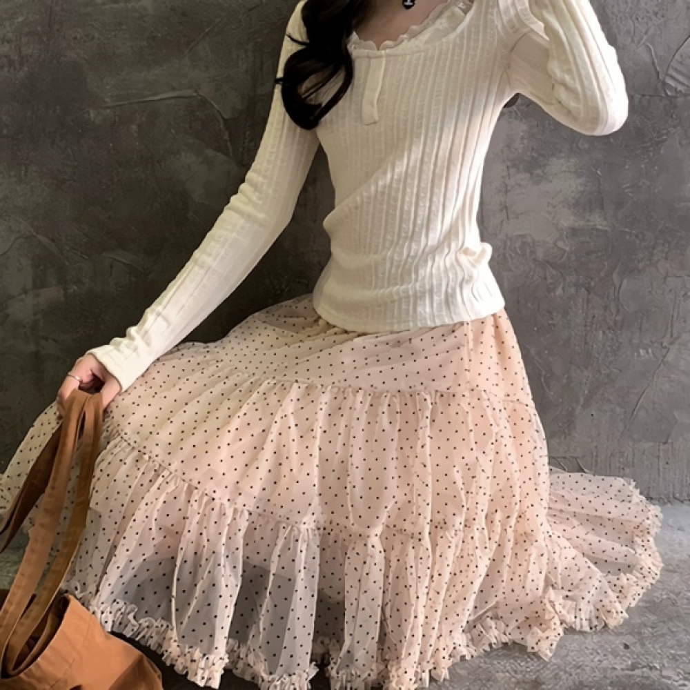 여성 봄 여름 도트 언발 미디 스커트