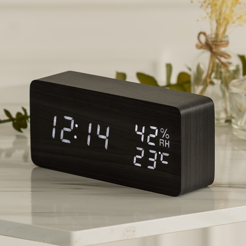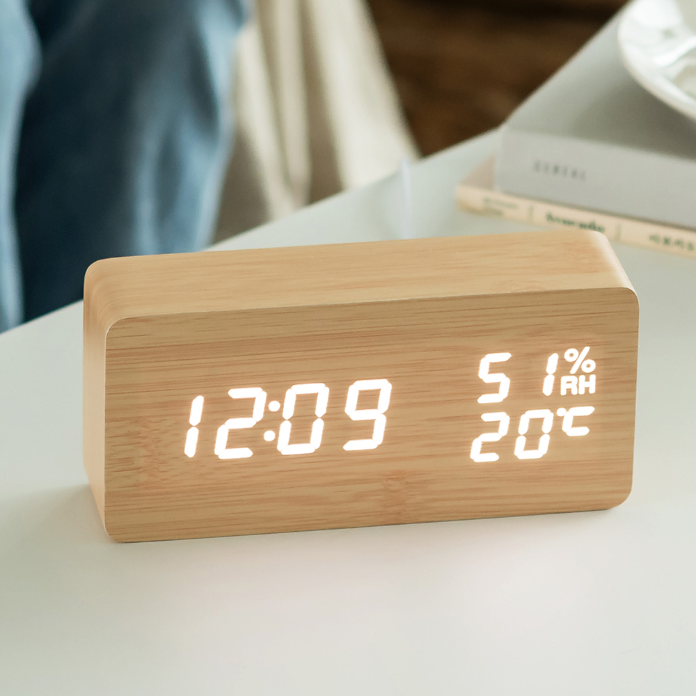 플라이토 우드 온습도 LED 탁상시계+USB아답터