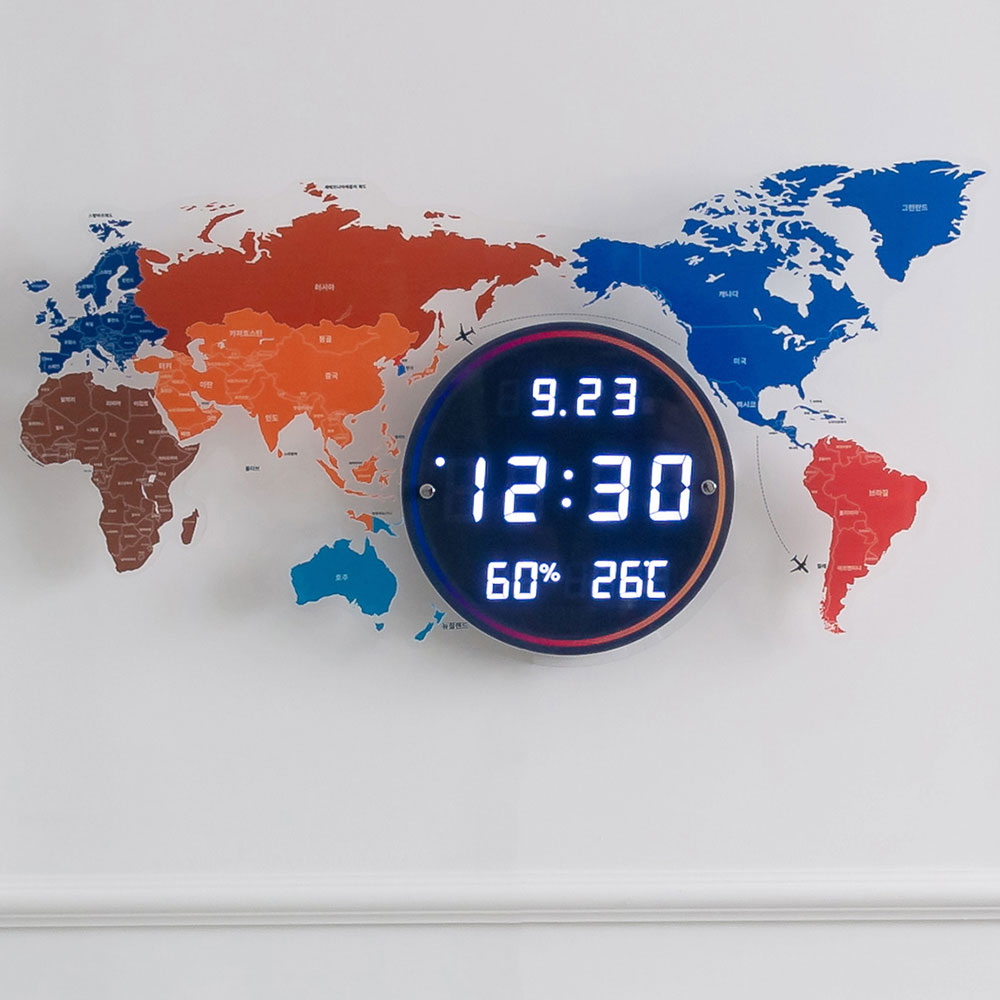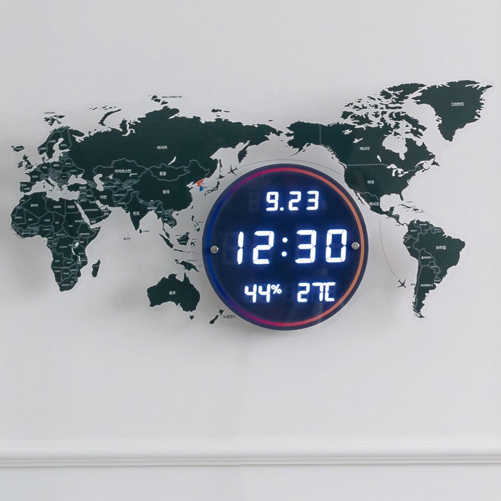 플라이토 세계지도 인테리어 LED 벽시계 70cm