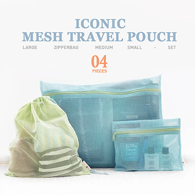 ○ 4가지 사이즈로 구성된 여행용 메쉬 파우치.
