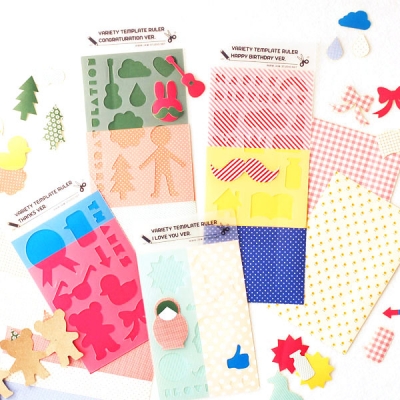 잼스튜디오 버라이어티 모양자+패턴스티커 10매 SET