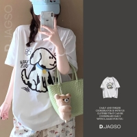 여성 레터링 강아지 프린팅 스판 반팔티