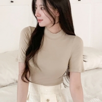 여성 스판 기본 이너 반팔 폴라 티셔츠