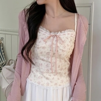 여성 봄 빈티지 플라워 나시 가디건 set
