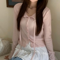 여성 봄 데일리 리본 타이 울 가디건