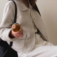 여성 핸드메이드 포켓 울 카라 숏코트