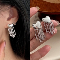 여성 s925 실버 빈티지 하트 체인 태슬 귀걸이