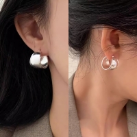 여성 s925 실버 와이드 볼드 링 이어링 귀걸이