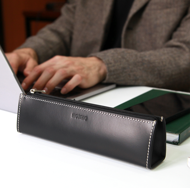 고등학생 대학생 가죽 필통 지퍼 고급 펜 케이스