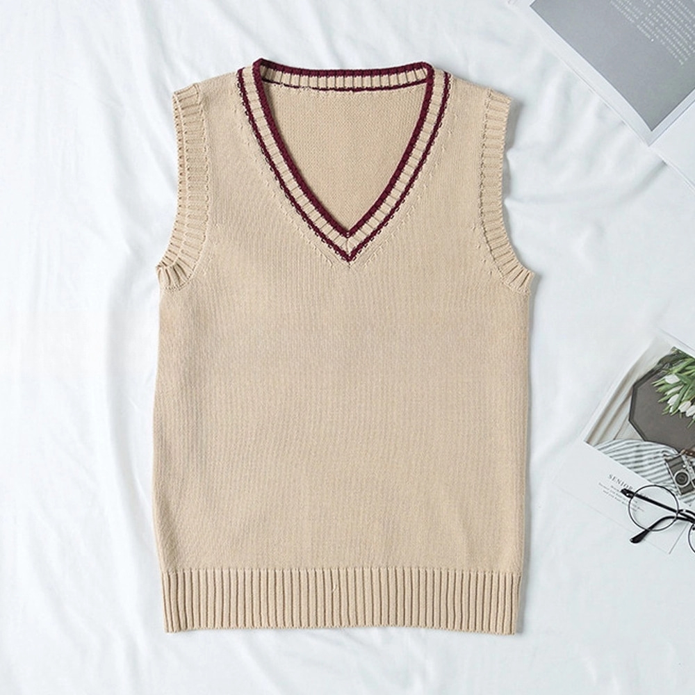 와인라인 베이지 교복조끼 학생복 교복 남자조끼