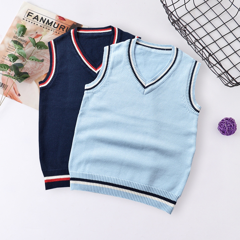 키즈 단색 브이넥 니트 조끼(5color) 교복 학생복