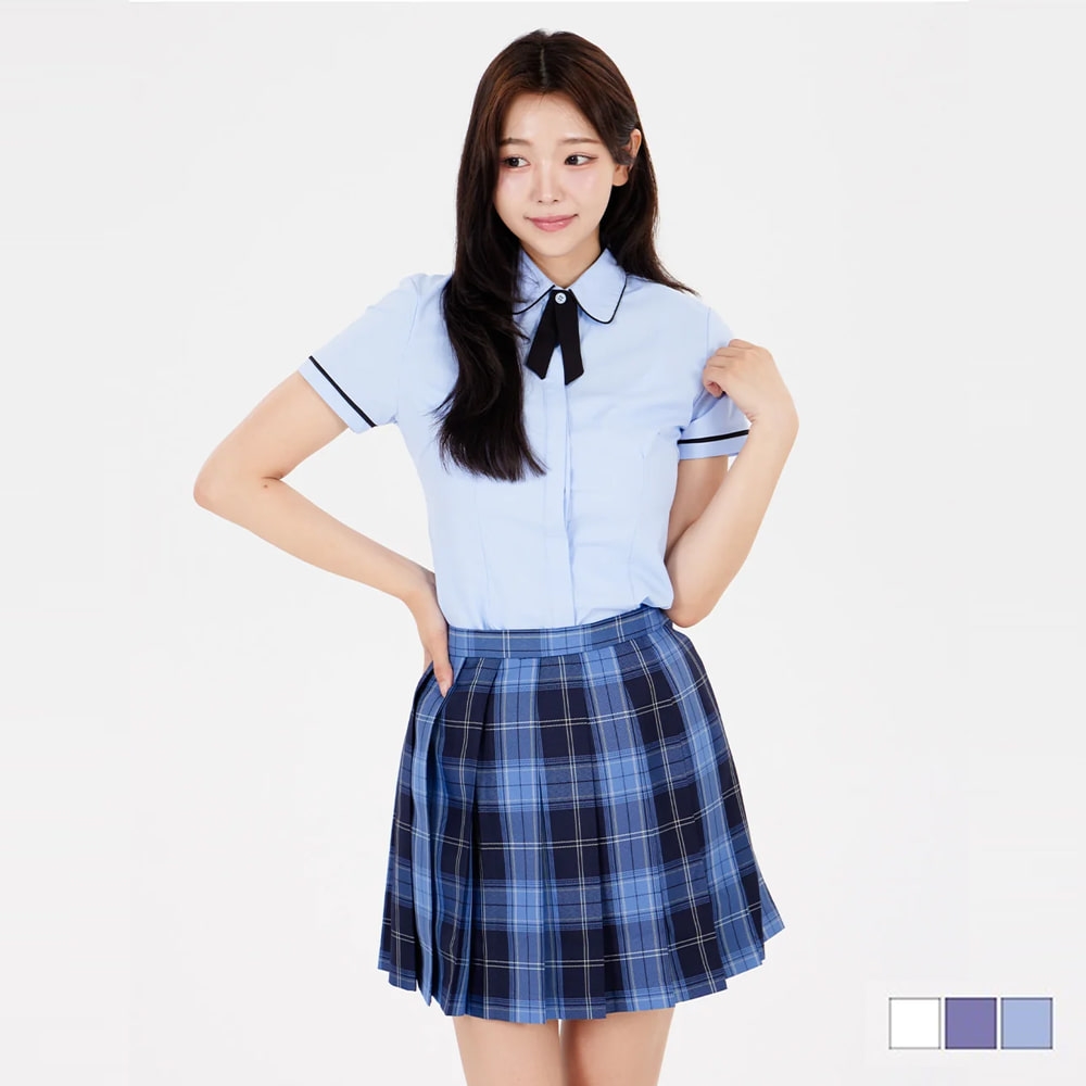 블랙라인 라운드카라 슬림라인 여자 블라우스 교복셔