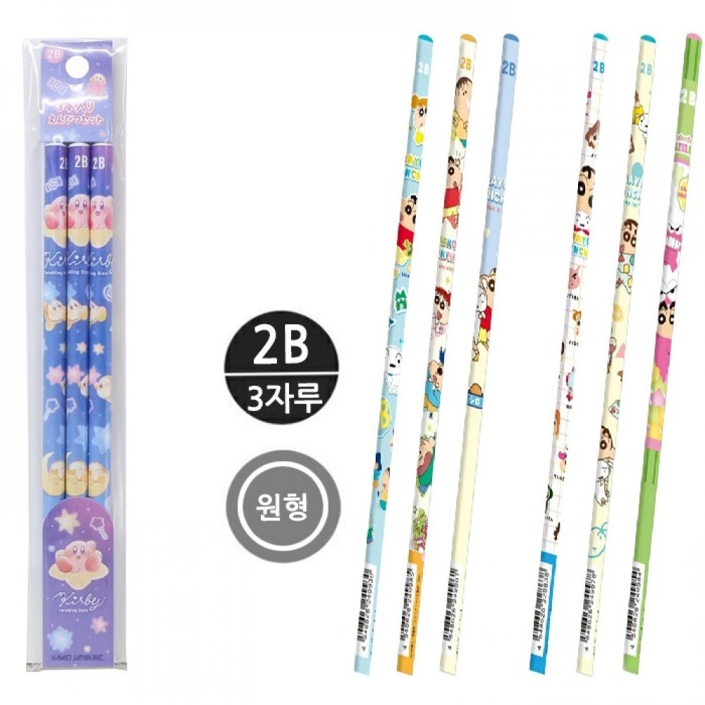 별의 커비 짱구는 못말려 2B 연필 3개 세트