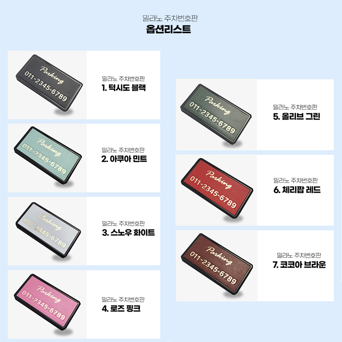 품명 및 모델명 밀라노 가죽 주차번호판