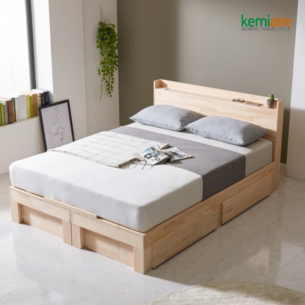 케미에르 편백나무(무절)원목 퀸 침대프레임(헤드형)