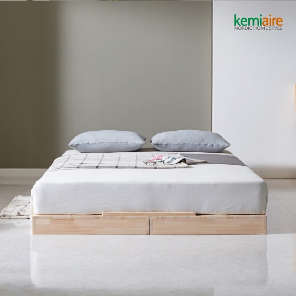 케미에르 편백나무(무절)원목 퀸 침대프레임(저상형)