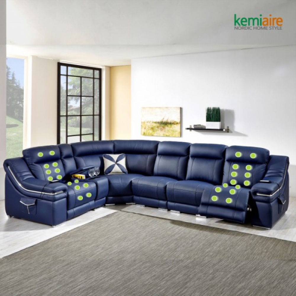 품명 케미에르 보르도 6인 스웨이드가죽 리클라이너쇼파 풀세트(안마기능탑재) KBM-601